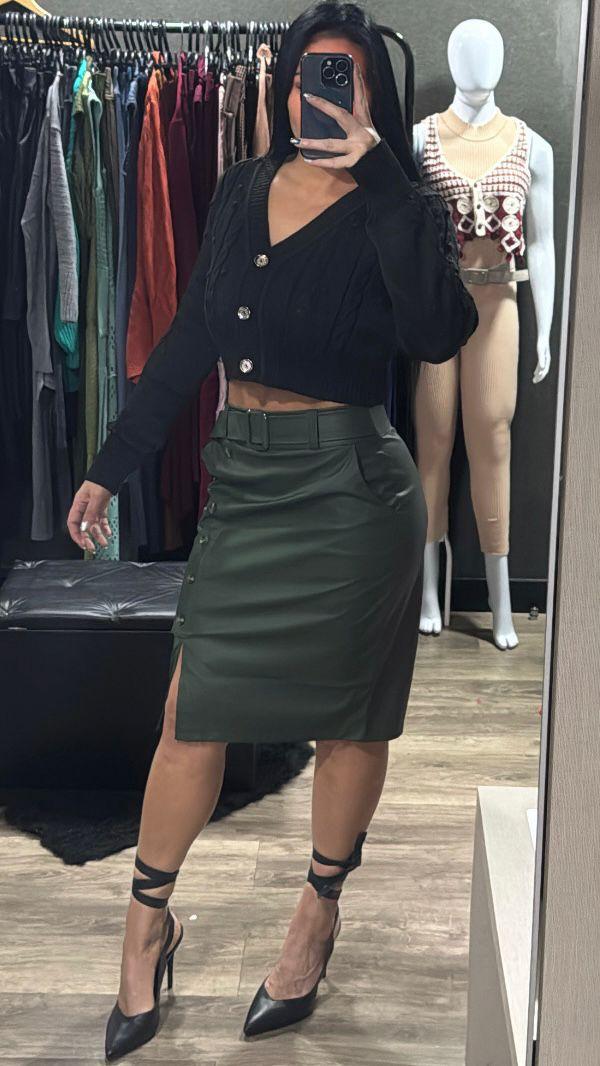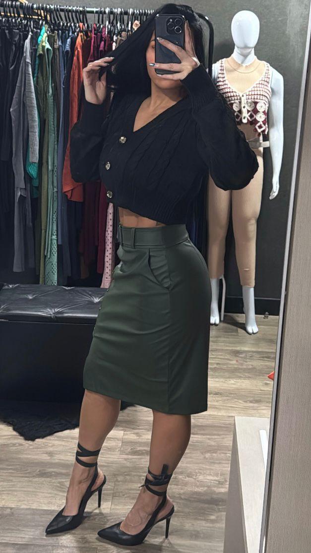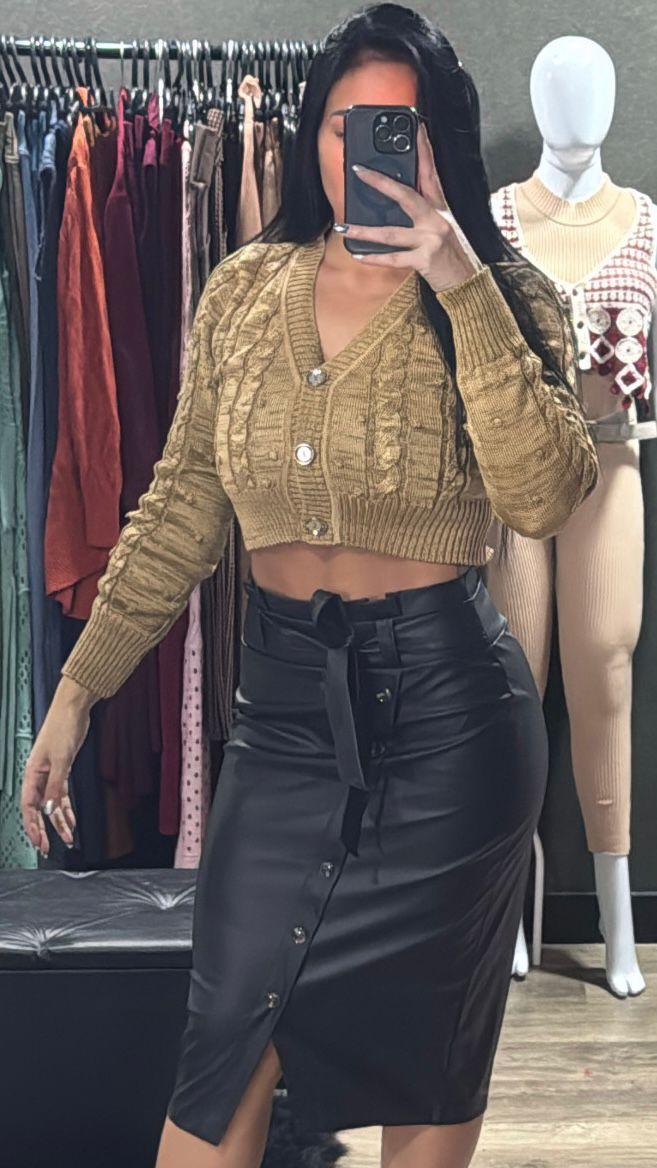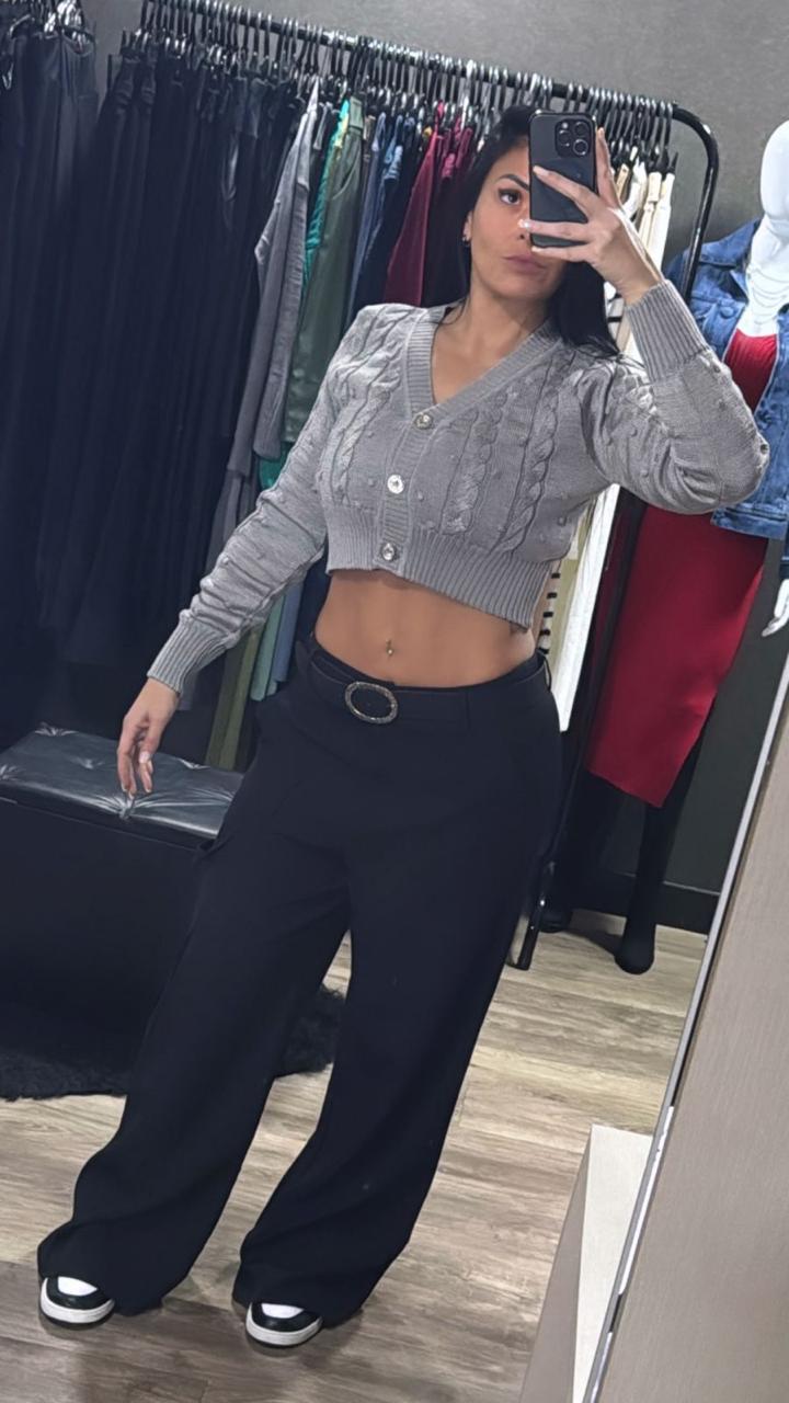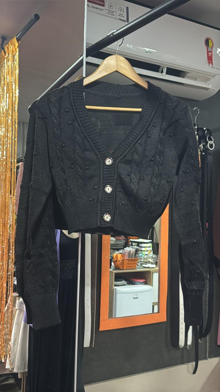 Casaquinho Cropped Tricô Manga Longa